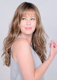 Tiger Sugar features the same Half Moon lace front to give freedom of wearing the hair behind the ears with an extended lace front hairline and the premium extra thin comfort ear tabs. Wide center monofilament, wispy bang with 22” long deconstructed beach wave. No need to worry about hairline showing on the sides and enjoy the freedom to wear the hair behind the ears.